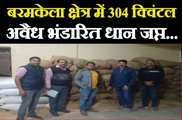 बरमकेला क्षेत्र में 304 क्विंटल अवैध भंडारित धान जप्त