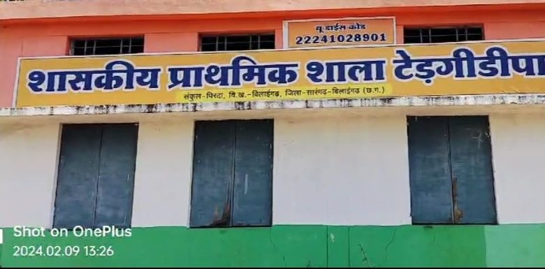 बिलाईगढ़= बिलाईगढ़ विकासखंड में शिक्षको की मनमानी चरम पर है जब मन चाहे स्कूल बंद कर घर चले जाते है ऐसा ही एक मामला सारंगढ़ बिलाईगढ़ जिला की बिलाईगढ़ विकासखंड में इसी तरह की लापरवाही खूब चल रहा आपको बता दे प्राथमिक शाला टेडगीडीपा की कहानी जहा बच्चो का भविष्य के साथ खेलवाड़ खूब हो रहा जहा 30 बच्चे एक रसोइया के हवाले स्कूल चल रहा और शिक्षक अपने कामों में मस्त होकर घूम रहे वही मिली जानकारी अनुसार जब 1.30 बजे स्कूल में ताला लग गया था शुक्रवार के दिन स्कूल बंद पड़ा हुआ है वही महज स्कूल के ही किनारे स्कूल ड्रेस में 5 से 7 बच्चे खेल रहे थे जब उनसे पूछा गया की किस स्कूल में पढ़ते है तो बच्चो ने बताया की टेडगीडीपा स्कूल में पढ़ते है बच्चो ने फिर बताया की आज स्कूल आए थे रसोइया ने स्कूल खोला और खाना बनाकर खिलाया फिर 1 बजकर 18 मिनट में सभी बच्चो का छुट्टी कर दिया गया और कोई टीचर स्कूल ही नही पहुंचे बच्चे छुट्टी होते तक खेलते रहे