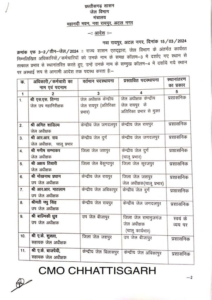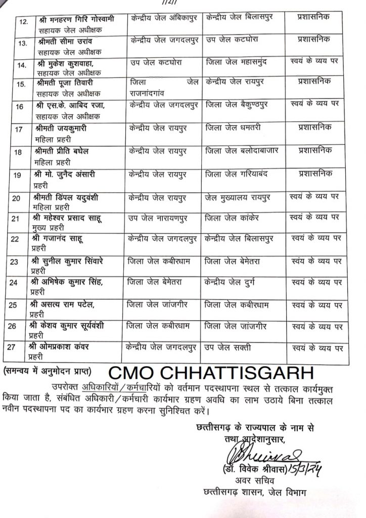 Uncategorizedछत्तीसगढ़ राज्य शासन द्वारा जेल विभाग अधिकारियों एवं कर्मचारियों के नवीन पदस्थापना आदेश जारी। Khabar Manthan TeamMarch 15, 2024 196 Facebook X WhatsApp Telegram देखें सूची… Khabar Manthan TeamMarch 15, 2024 196 Facebook X WhatsApp Telegram Share Facebook X WhatsApp Telegram