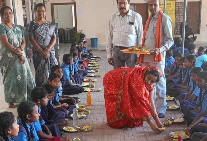 रायगढ/ 28 नवम्बर 2024/ छत्तीसगढ़ शासन स्कूल शिक्षा विभाग द्वारा समस्त शासकीय एवं अनुदान प्राप्त प्राथमिक एवं माध्यमिक शालाओ में प्रधानमंत्री पोषण शक्ति निर्माण योजना के अंतर्गत समुदाय के सहभागिता एवं भागीदारी को प्रोत्साहित करने के लिए न्यौता भोजन प्रारंभ किया गया है। न्यौता भोजन की प्रमुख अवधारणा प्रधानमंत्री पोषण शक्ति निर्माण योजना के तहत जिले के अध्यनरत प्राथमिक एवं माध्यमिक स्कूलों  के छात्र-छात्राओं को अतिरिक्त पोषण आहार में वृद्धि की दृष्टि से न्यौता भोजन आयोजित किया जा रहा है। प्रधानमंत्री पोषण शक्ति योजना के न्यौता भोजन का आशय भोजन दान की प्रकृति को महादान की प्रकृति के रूप में प्रचारित किया जाना है। राज्य शासन के दिशा-निर्देशों का पालन करते हुए विभिन्न सामुदायिक भागीदारी से स्कूलों में विभिन्न अवसरों जैसे त्योहार, विशेष अवसरों जैसे वर्षगांठ, जन्मदिन, विवाह एवं राष्ट्रीय पर्व में भारतीय परंपरा आधारित बड़ी संख्या में लोगों को भोजन समुदाय, शिक्षक के द्वारा कराया जा रहा है।