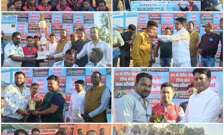 घरघोड़ा में आयोजित जय माँ बैगिन डोकरी टेनिस बॉल क्रिकेट प्रतियोगिता का भव्य समापन 19 जनवरी 2025 को हुआ। इस टूर्नामेंट में कुल 32 टीमों ने भाग लिया, जिनमें लैलूंगा क्षेत्र की बरखुरिया की टीम ने शानदार प्रदर्शन करते हुए फाइनल में मॉर्निंग स्टार धरमजयगढ़ की टीम को हराकर विजेता का खिताब अपने नाम किया।