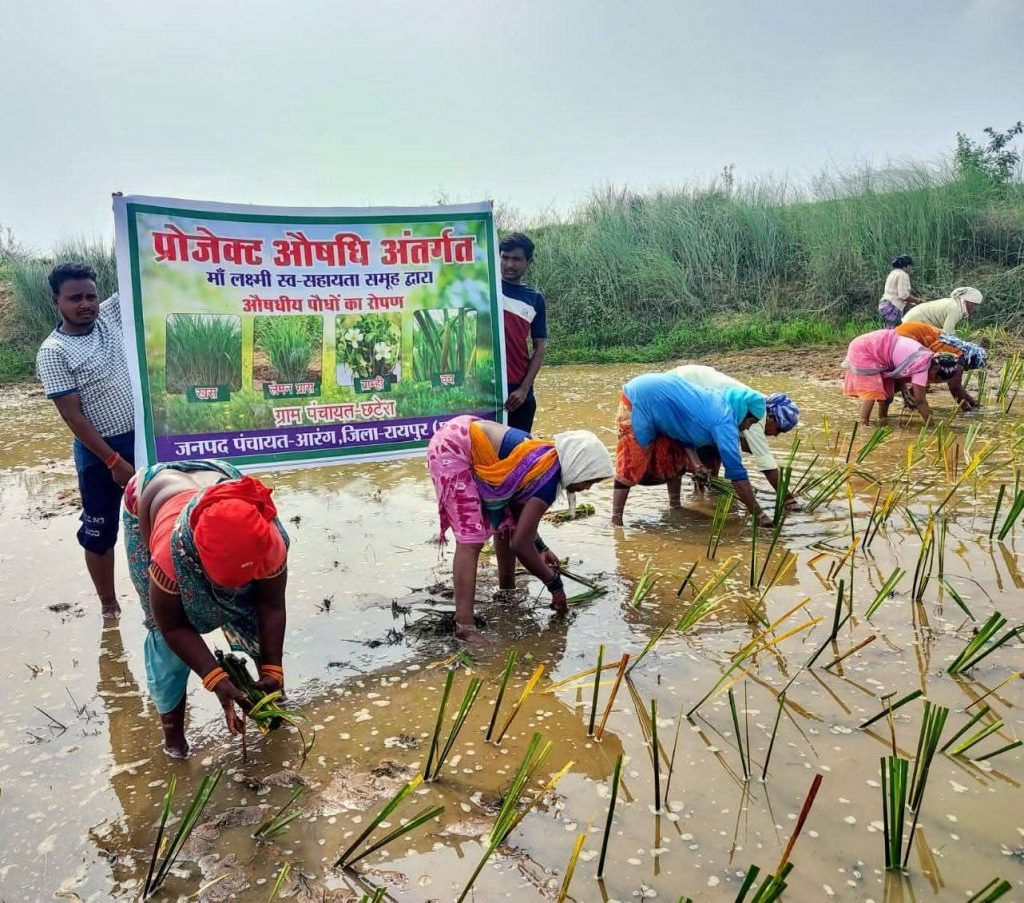 CSIR – केन्द्रीय औषधीय संस्थान और राष्ट्रीय औषधीय पौधा बोर्ड के विशेषज्ञों का तकनीकी सहयोग तथा सीईओ जिला पंचायत कुमार बिश्वरंजन के मार्गदर्शन में योजना के प्रथम चरण में आरंग के तीन ग्राम पंचायत—बनचरोदा, छटेरा और चटोद में कुल 14 एकड़ पंचायत की सामुदायिक और व्यक्तिगत जमीन पर औषधीय पौधों जैसे बच, खस और ब्राह्मी का रोपण किया जा रहा।