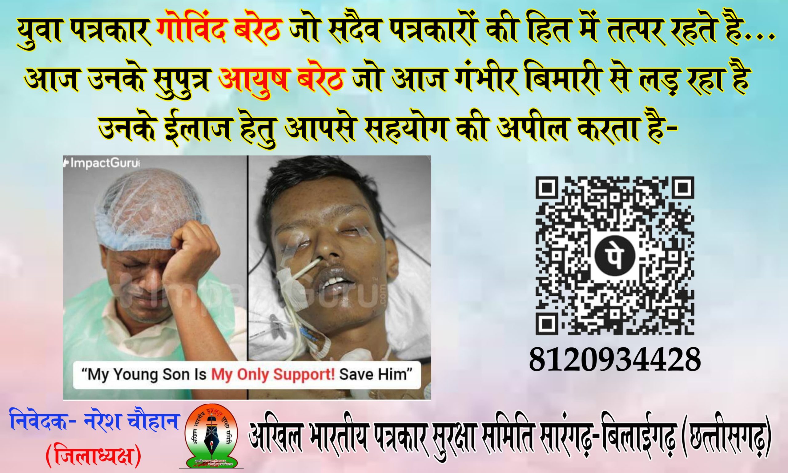 अखिल भारतीय पत्रकार सुरक्षा समिति सारंगढ़ ने पत्रकार साथी गोविन्द बरेठ का किया सहयोग. तथा मदद के लिए किया अपील