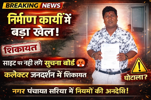 नगर पंचायत सरिया में निर्माण कार्यों में लापरवाही, सूचना बोर्ड नहीं— कलेक्टर जनदर्शन में शिकायत