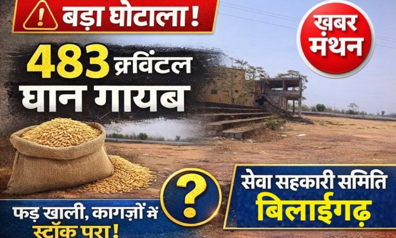 सेवा सहकारी समिति बिलाईगढ़ में बड़ा खेल! 483 क्विंटल धान फड़ से गायब,फिर भी अधिकारियों की नरमी पर सवाल?